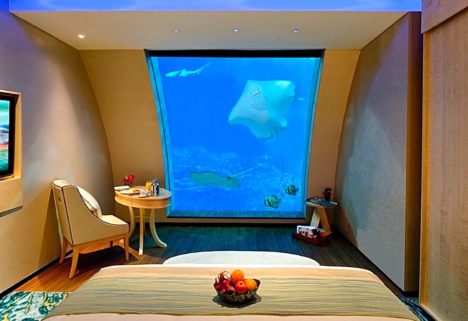 This spacious two-story townhouse comes with a comfortable Simmons "Cool Max" bed and a Nespresso coffee machine. The upper level has an open-concept living area with an outdoor patio and a hot tub. The lower level offers guests an underwater view of over 50,000 marine fishes.